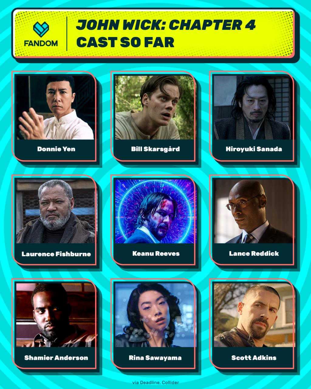 키아누 리브스, 견자단, 빌 스카스가드, 로렌스 피시번, 사나다 히로유키, 샤미어 앤더슨, 랜스 레딕